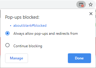 If the above icon did not appear, use the following instructions to allow popups for this site: