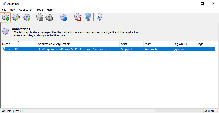 AlwaysUp is a third-party application that can be licensed and then used to ensure that DB Precision will always be running for purposes of powering the Internet Portal. Below is an overview of setup and usage on the Internet Controller.